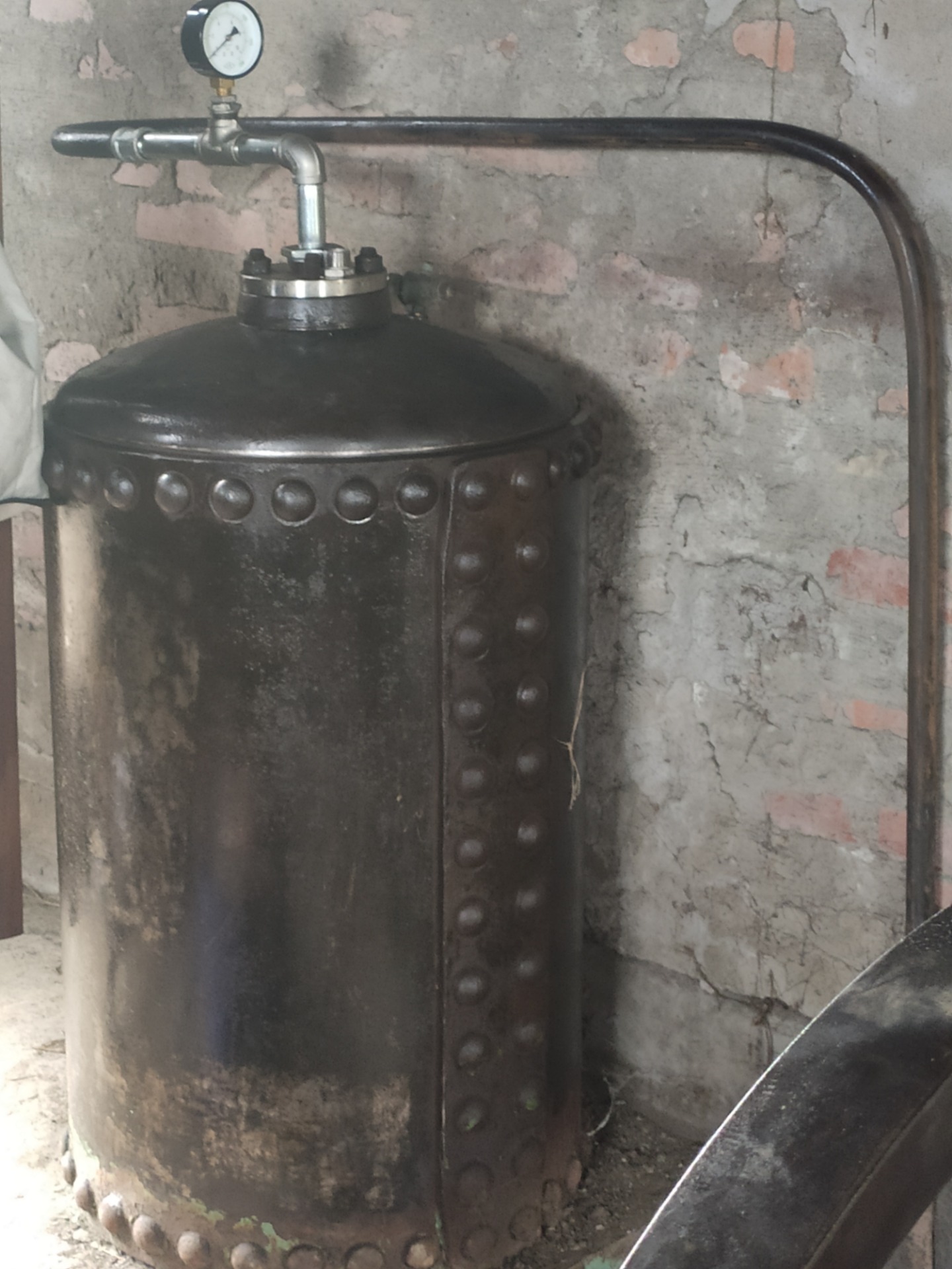 入口端應有過濾器、壓力計及閥門等,以及出口端的開關閥門都已經遺失。因不再需要蓄積高壓空氣,僅將管線接回,入口端安裝一壓力錶。