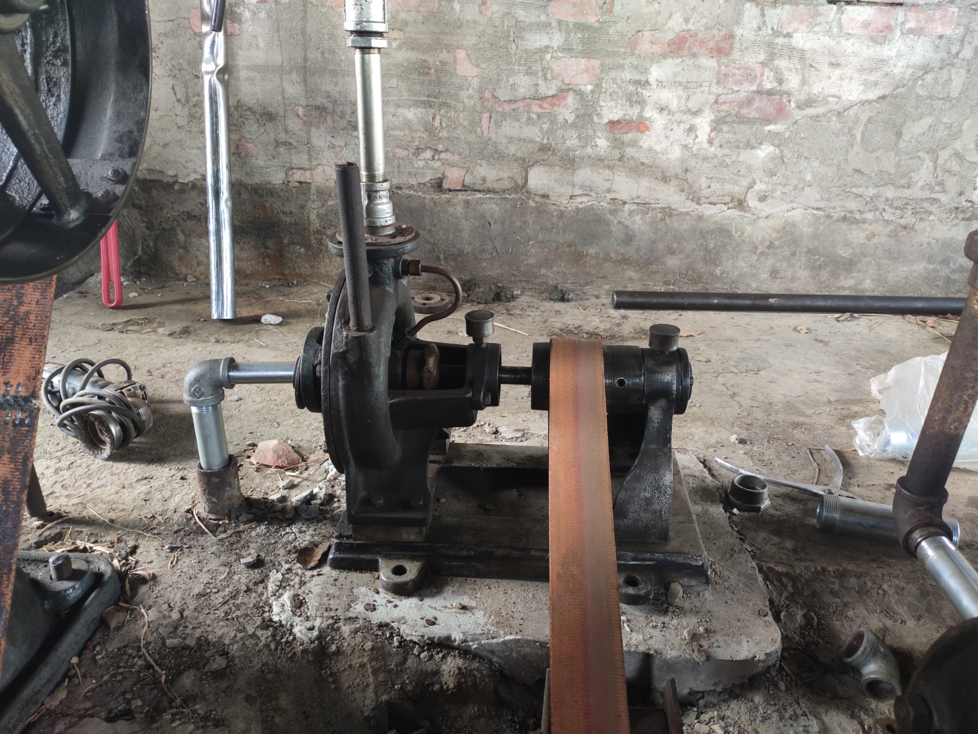 此元件在煤油發動機啟動後藉由皮帶連動傳動軸1 開始作動,將儲存在站場外清水池內的水自泵體中心吸入,藉由葉片旋轉將水經管線送往高處水箱,作為柴油發動機冷卻水使用。機件較小巧,未見任何銘牌標示規格及製造公司。